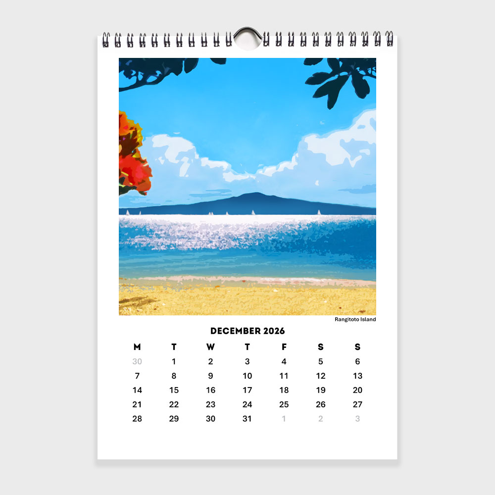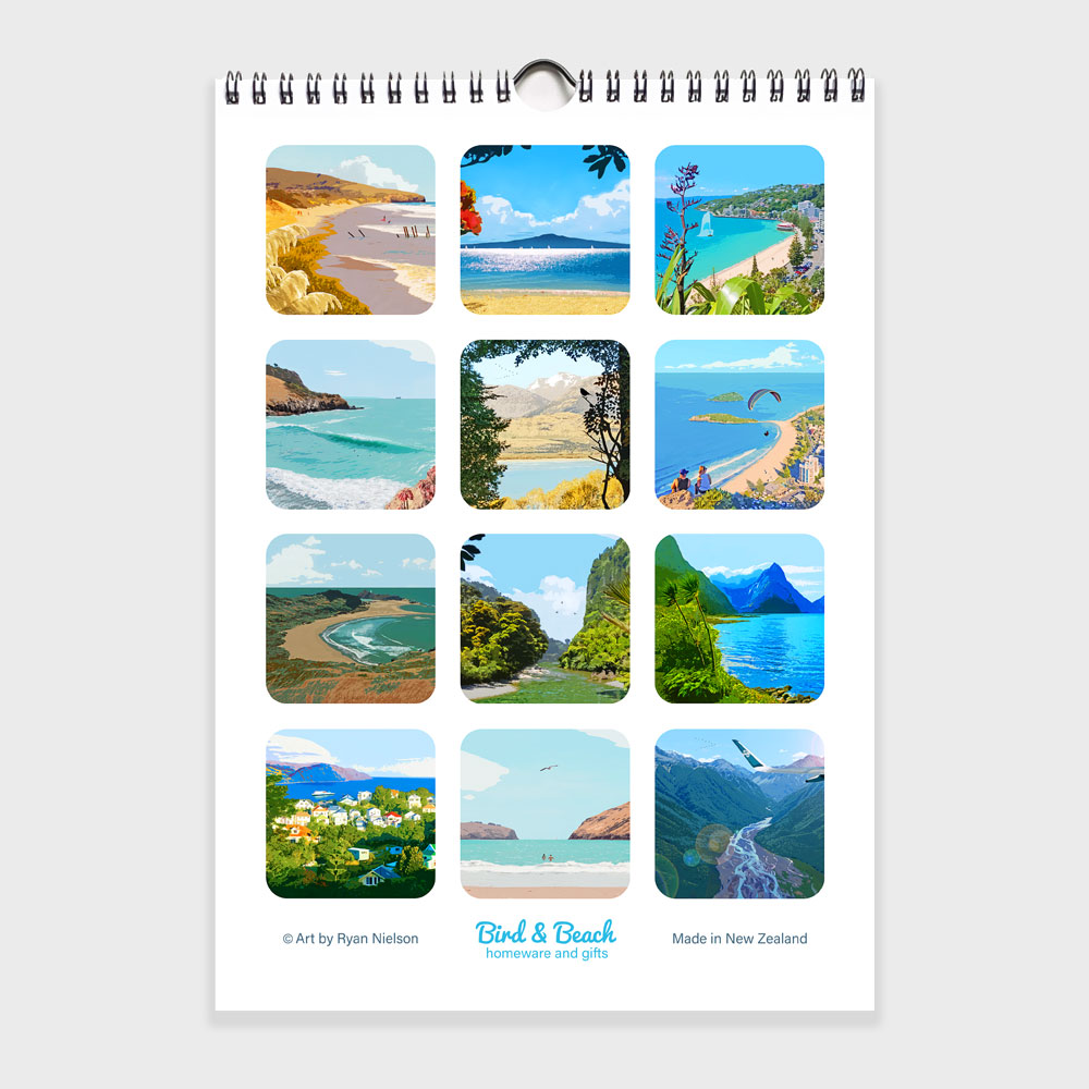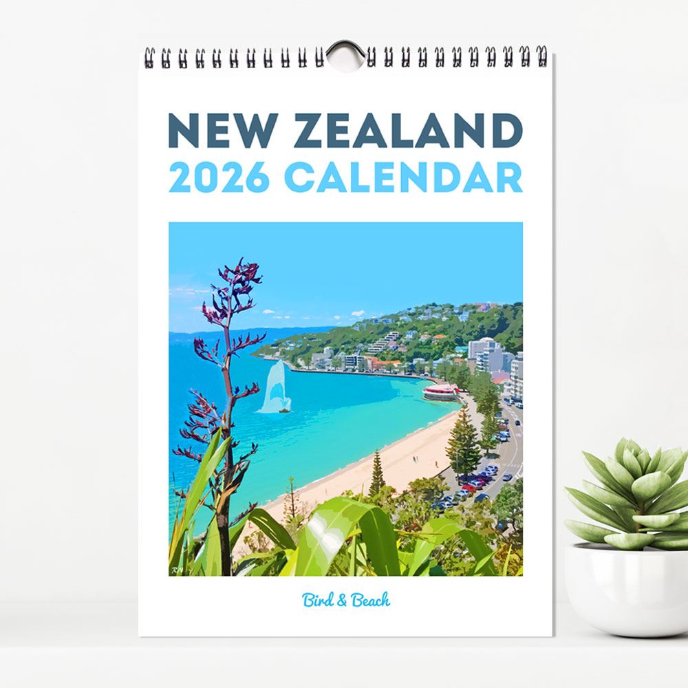 The 2026 Bird and Beach calendar is an ideal gift or memento to be enjoyed in New Zealand homes or sent overseas. The beautiful illustrations offer a fresh approach to iconic destinations throughout the country.