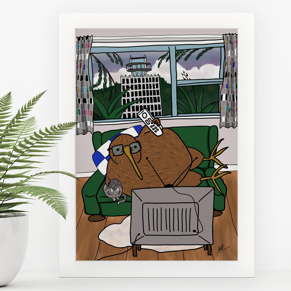 A4 Print – Kiwi on the Couch