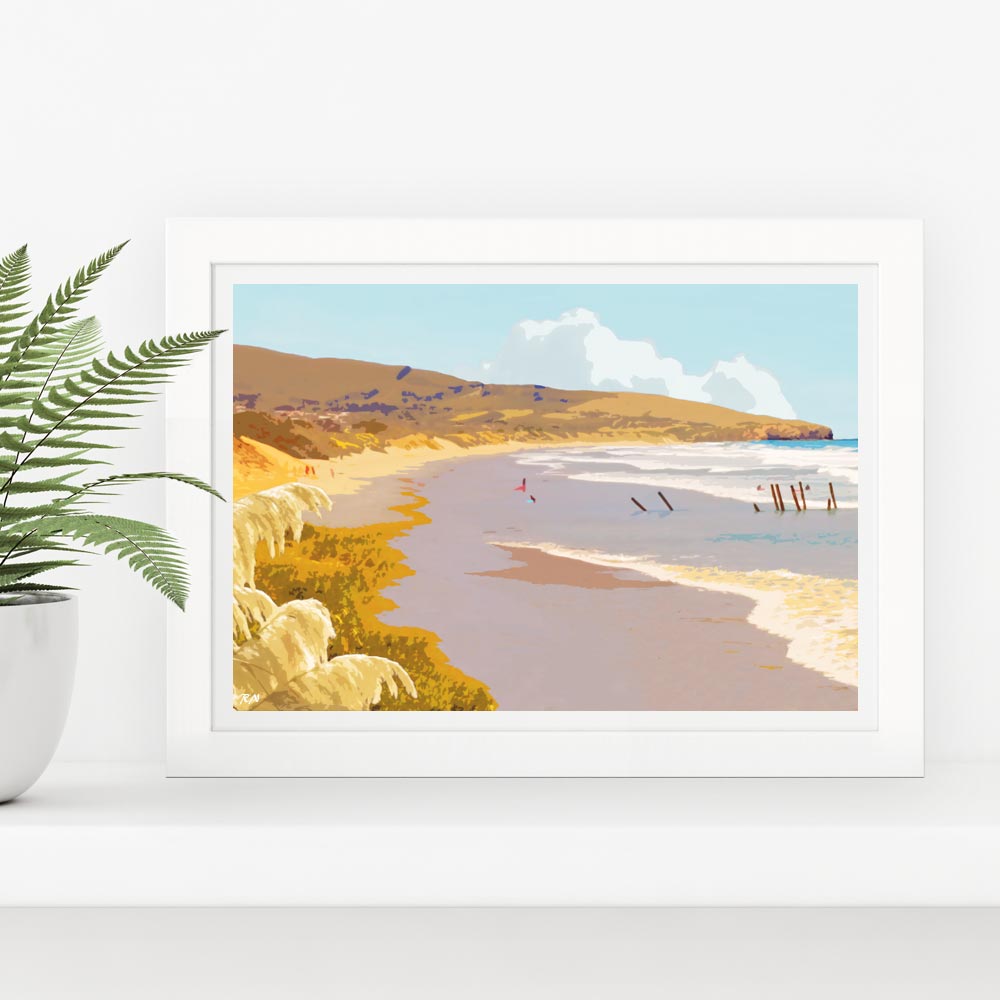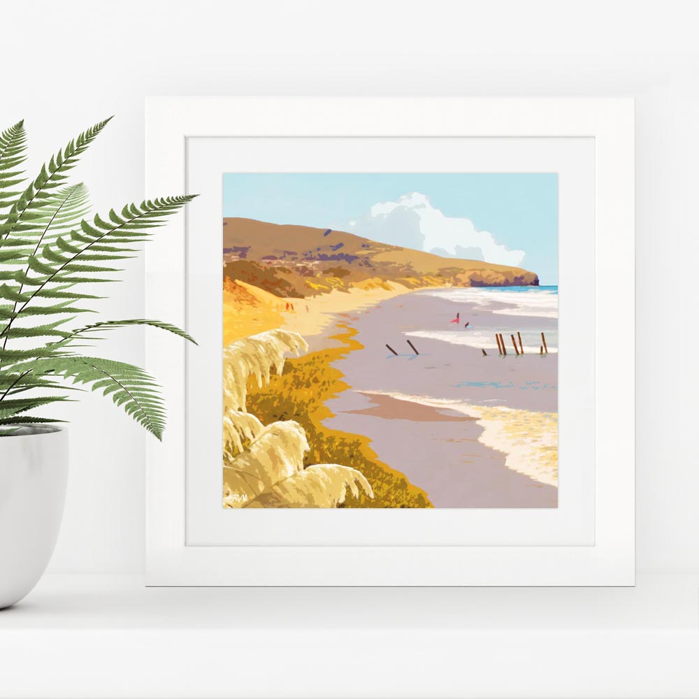 Unframed print of St Clair Beach, Dunedin. Original illustration by Ryan Nielson, exclusively for Bird and Beach.